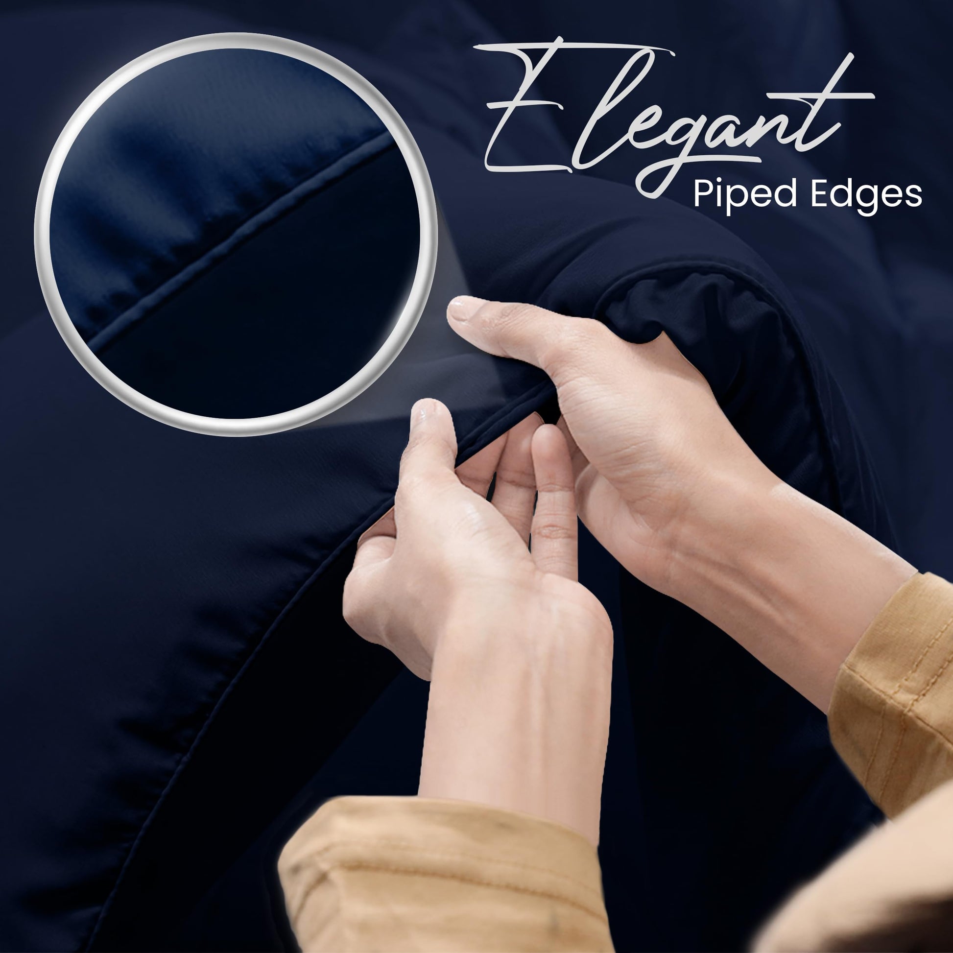 - Box Style Stitching: Crisp looking comforter featuring Piped Edges with an elegant Box Style Stitching Pattern that not only looks beautiful, but prevents the fill from shifting during the night, ensuring a comfortable sleep